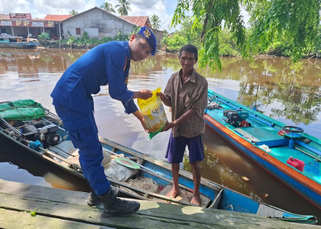 Sekitar pukul 10.00 WIB, saat melaksanakan patroli rutin, personel KP. VI-10-05 menyambangi Bapak Wahyudi (61), seorang nelayan tradisional yang tengah beraktivitas di perairan Rasau. Sebagai bentuk kepedulian terhadap kesejahteraan masyarakat pesisir, petugas menyerahkan paket bantuan sembako secara langsung.