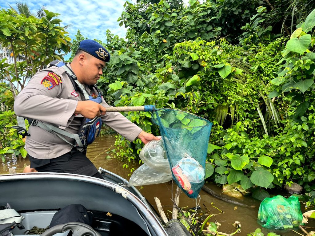 “Kami tidak hanya sekedar membersihkan sungai dan pantai tapi mengajak masyarakat sekitar tentang pentingnya menjaga kebersihan laut” terang aipda alex sp.