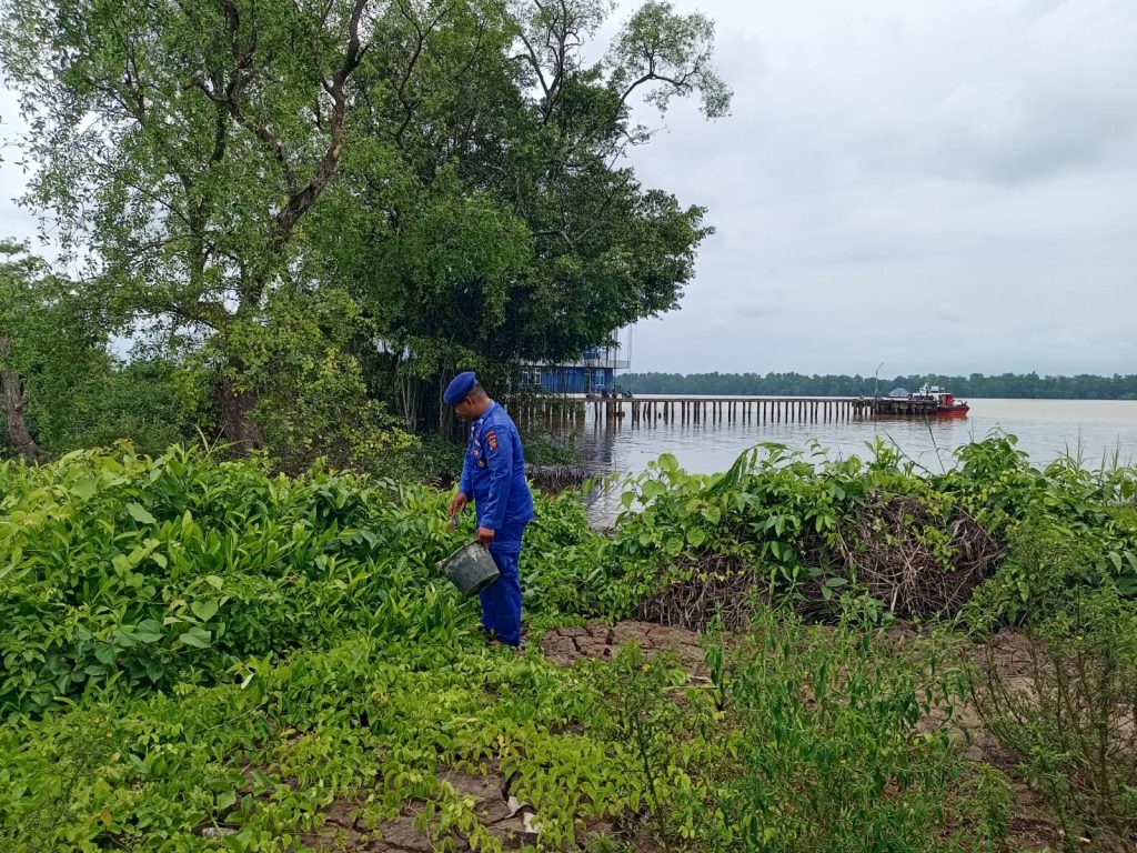 “Personel KP. PENATA VI – 1006 melaksanakan bersih bersih sampah yang ada disekitaran pesisir muara jungkat