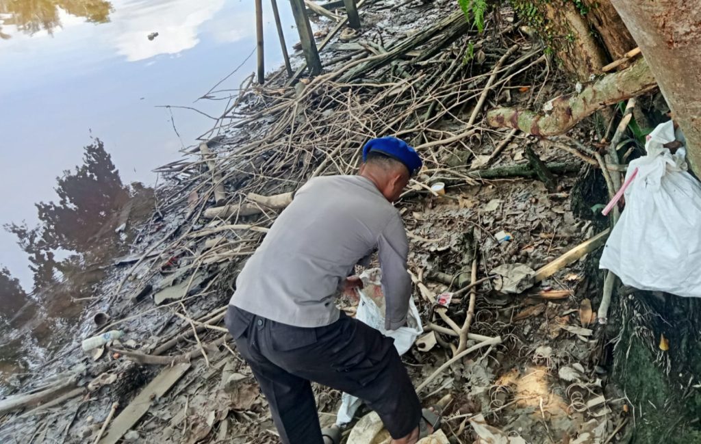 “Personel KP. VI-10-05 Rasau jaya melaksanakan bersih bersih sampah yang ada disekitaran pesisir Rasau jaya