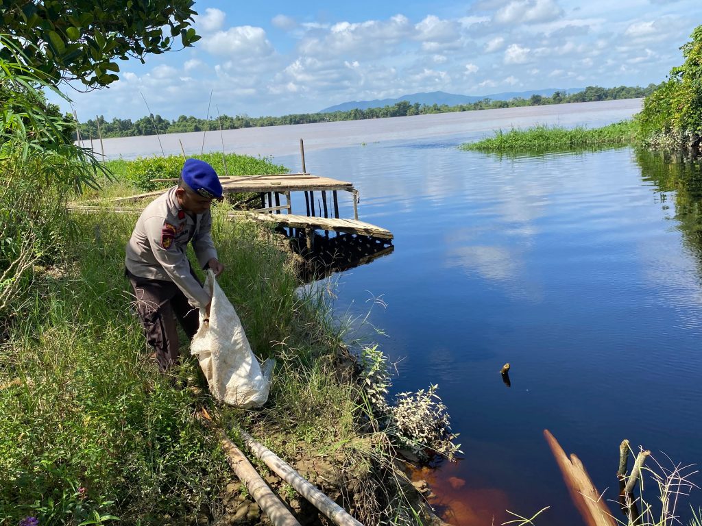 “Personel KP. VI-10-05 Rasau jaya melaksanakan bersih bersih sampah yang ada disekitaran pesisir Rasau jaya