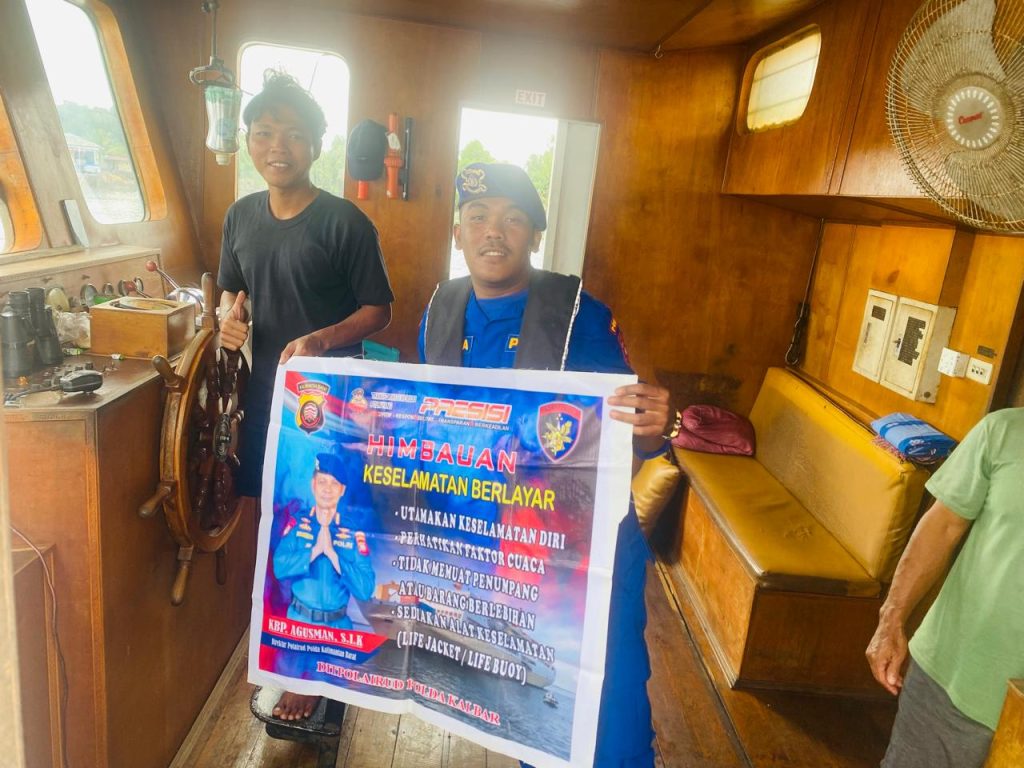 Personil KP. VI-10-18 Batu Ampar Memberikan menghimbau Keselamatan berlayar kepada Crew Kapal yang sedang melintasi alur perairan sungai Batu Ampar untuk memenuhi alat keselamatan seperti life jacket, ringbuoy, dan lain-lain, Disamping itu juga agar memperhatikan faktor cuaca sebelum melakukan pelayaran-