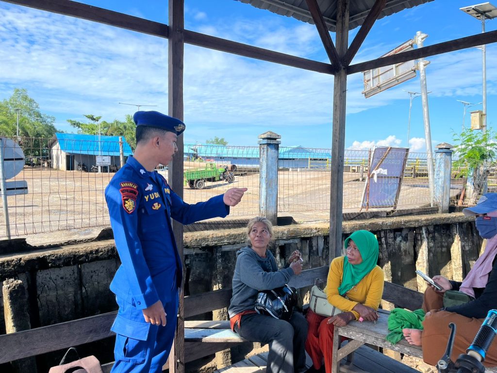 BerandaBeritaKP.VI-10-09 SAMPAIKAN PESAN KAMTIBMAS KEPADA PENUMPANG MOTOR TAMBANG DERMAGA TELUK BATANG