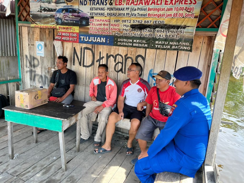 Kayong Utara, 23 April 2026 – Personel KP.VI-10-09 melaksanakan kegiatan patroli dialogis sekaligus menyampaikan pesan Keamanan dan Ketertiban Masyarakat (Kamtibmas) kepada para penumpang dan motoris kapal klotok di Dermaga Perairan Teluk Batang. Kegiatan ini menjadi bagian dari upaya preventif dalam menciptakan situasi perairan yang aman, tertib, dan kondusif.