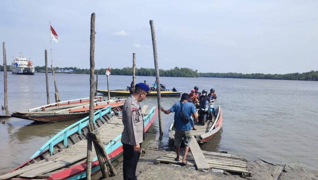 Paloh Sambas, 29 September 2025 – Selain melaksanakan patroli rutin, personil KP. VI-10-11 Paloh juga melakukan kegiatan pengamanan dan pengawasan di area penyebrangan Paloh dengan rute Sungai Sumpit – Ceremai.Kegiatan ini bertujuan untuk menciptakan rasa aman bagi para penumpang yang hilir-mudik, baik pengguna jasa transportasi air maupun masyarakat yang melakukan aktivitas di dermaga. Personil turut membantu kelancaran proses turun naik penumpang dan kendaraan, memastikan semua berjalan tertib dan aman.Kehadiran polisi di tengah-tengah aktivitas masyarakat perairan dipandang sangat penting, tidak hanya sebagai penegak hukum, tetapi juga sebagai pelindung dan pengayom yang memberikan rasa nyaman. Dengan adanya pengawasan ini, potensi gangguan keamanan maupun kecelakaan dapat diminimalisir, sehingga pelayanan penyebrangan dapat berjalan lancar.Hingga kegiatan berakhir, situasi perairan dan dermaga terpantau aman, tertib, dan kondusif.