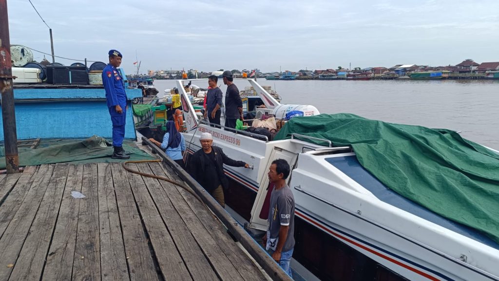 Hari Kamis, 13 November 2025 KP VI-10-12 Tanjung Pulau melakukan Pengamanan dan pengawasan aktifitas naik turun penumpang dan barang di Speedboad Penumpang LB. Bintang Rizki Express 99 Rute Pontianak – Ketapang di Dermaga Pelabuhan Sungai Senghie