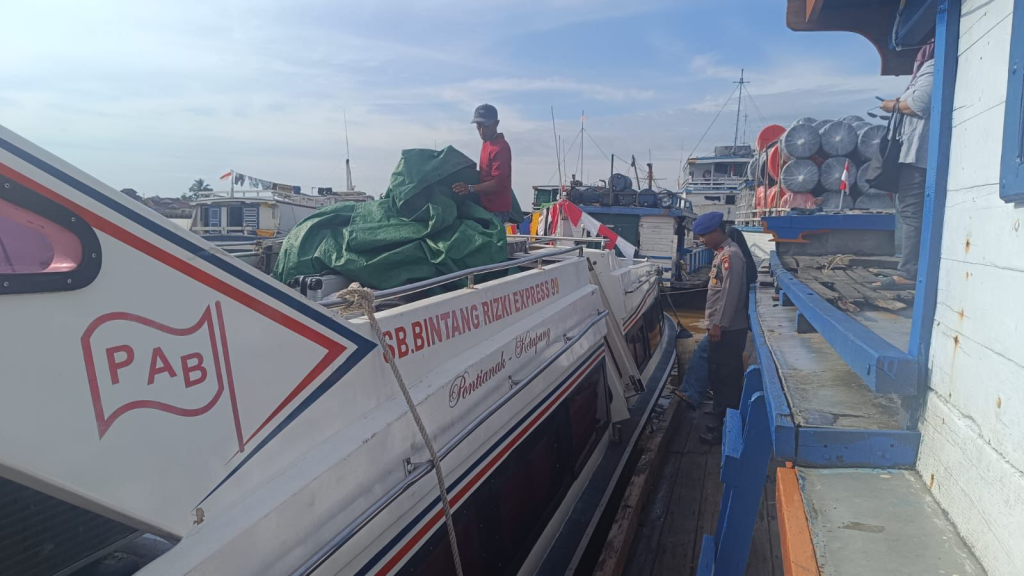 Hari Jumat, 7 November 2025 KP VI-10-12 Wil Tanjung Pulau melakukan Pamwas naik turun penumpang dan barang ke LB. Bintang Riski Express 99, Rute Pontianak – Ketapang di Dermaga Pelabuhan Sheng Hie