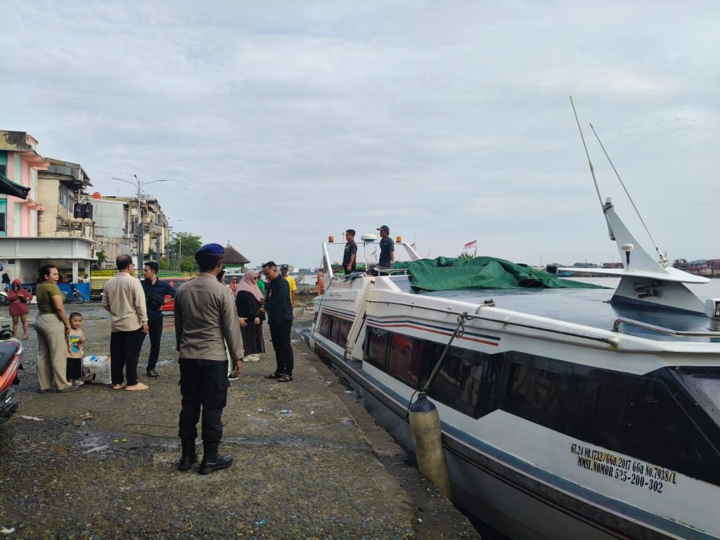 Hari Selasa, 11 November 2025 KP VI-10-12 Wil Tanjung Pulau melakukan Pamwas naik turun penumpang dan barang ke LB. Bintang Riski Express 99, Rute Pontianak – Ketapang di Dermaga Pelabuhan Sheng Hie