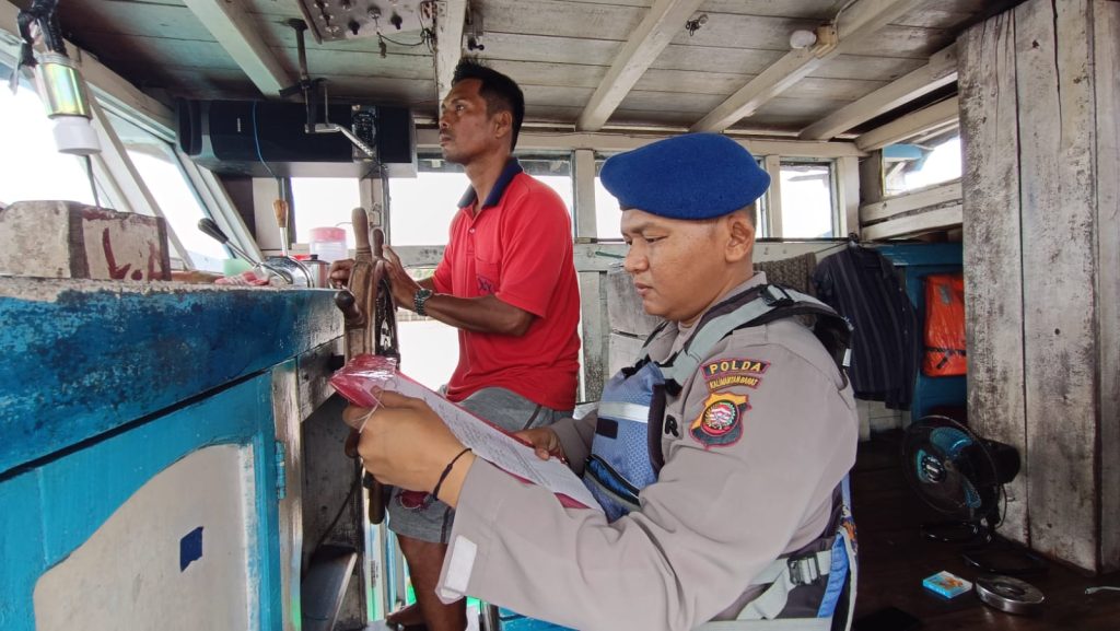 Hari Minggu, 05 Oktober 2025, KP VI-10-12 Tanjung Pulau melakukan giat pemeriksaan dokumen terhadap Kapal Tugboat TB. Mitra II GT. 29 yang dinahkoda oleh Sdr. Abdul Ghofur yang menarik Tongkang Turu Bahtera Jaya GT. 224 muatan kosong yang bertolak dari Wajok dengan tujuan Sintang Raya – Pemeriksaan dilakukan untuk mengecek kelengkapan dokumen kapal serta muatan guna mencegah terjadinya pelanggaran dan tindak pidana.