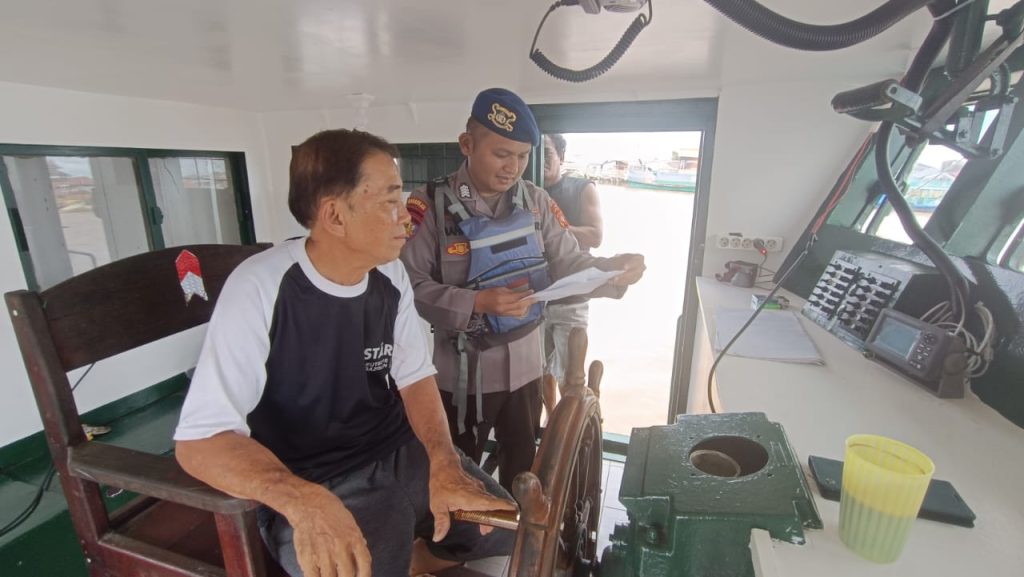 Hari Jum’at, 24 Oktober 2025, KP VI-10-12 Tanjung Pulau melakukan giat pemeriksaan dokumen terhadap Kapal Tugboat Atlas 27 GT. 66 yang dinahkoda oleh Sdr. Suhadi yang menarik Tongkang Usaha Djaya Indonesia GT. 241 muatan BBM yang bertolak dari AKR Pontianak dengan tujuan Teluk Batang – Pemeriksaan dilakukan untuk mengecek kelengkapan dokumen kapal serta muatan guna mencegah terjadinya pelanggaran dan tindak pidana.
