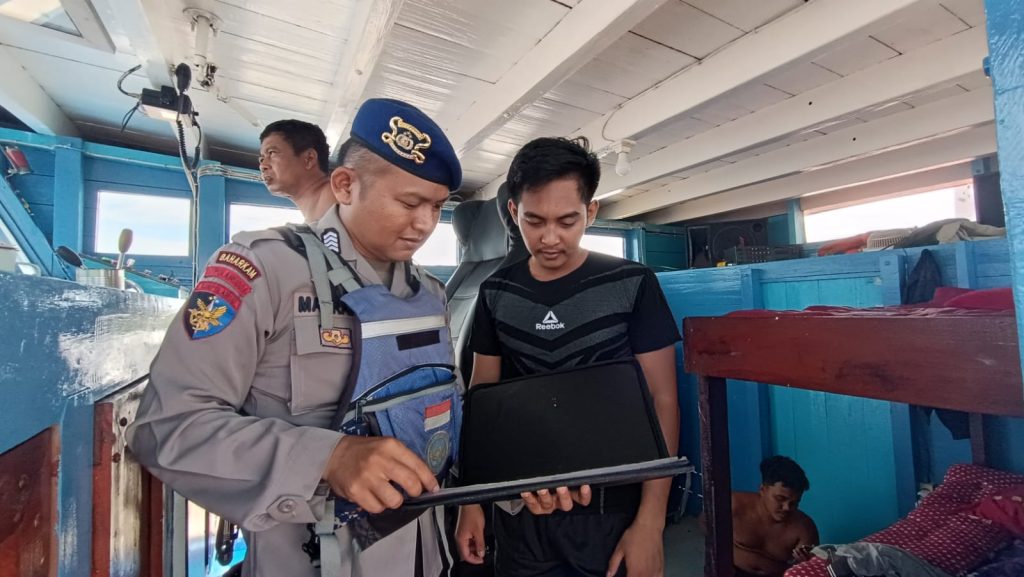 Hari Selasa, 25 Oktober 2025, KP VI-10-12 Tanjung Pulau melakukan giat pemeriksaan dokumen terhadap Kapal Tugboat Sinar Laut GT. 46 yang dinahkoda oleh Sdr. Yahya yang menarik Tongkang TKC -V GT. 300 muatan kosong yang bertolak dari Dermaga Sui Durian Sungai Raya dengan tujuan Dermaga Mandau Pontianak