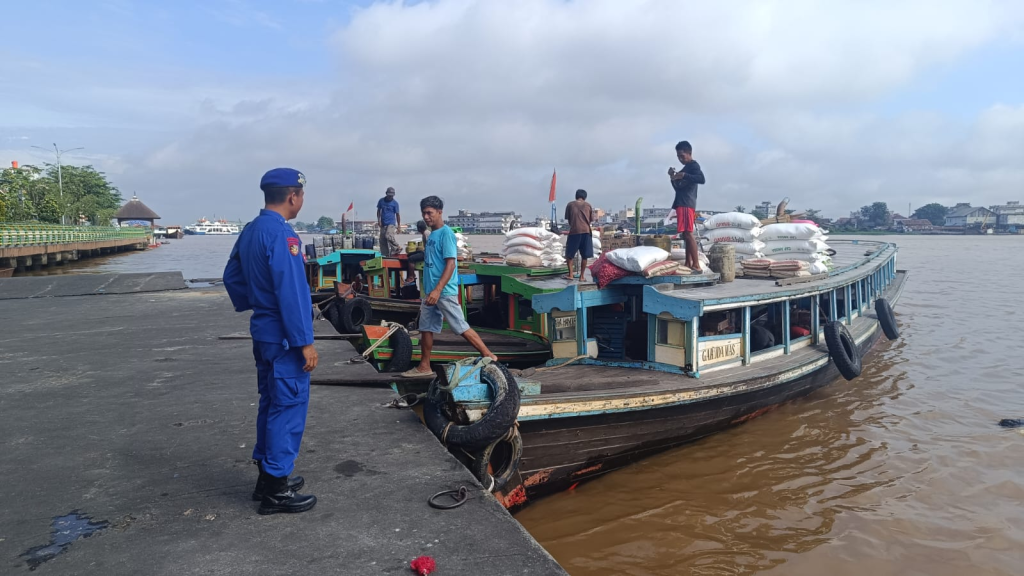 Hari Kamis, 06 November 2025, KP. VI-10-12 Tanjung Pulau melaksanakan pengamanan dan pengawasan terhadap aktifitas para pekerja buruh angkut pelabuhan yang beraktifitas di Pelabuhan Kapuas Besar Pontianak