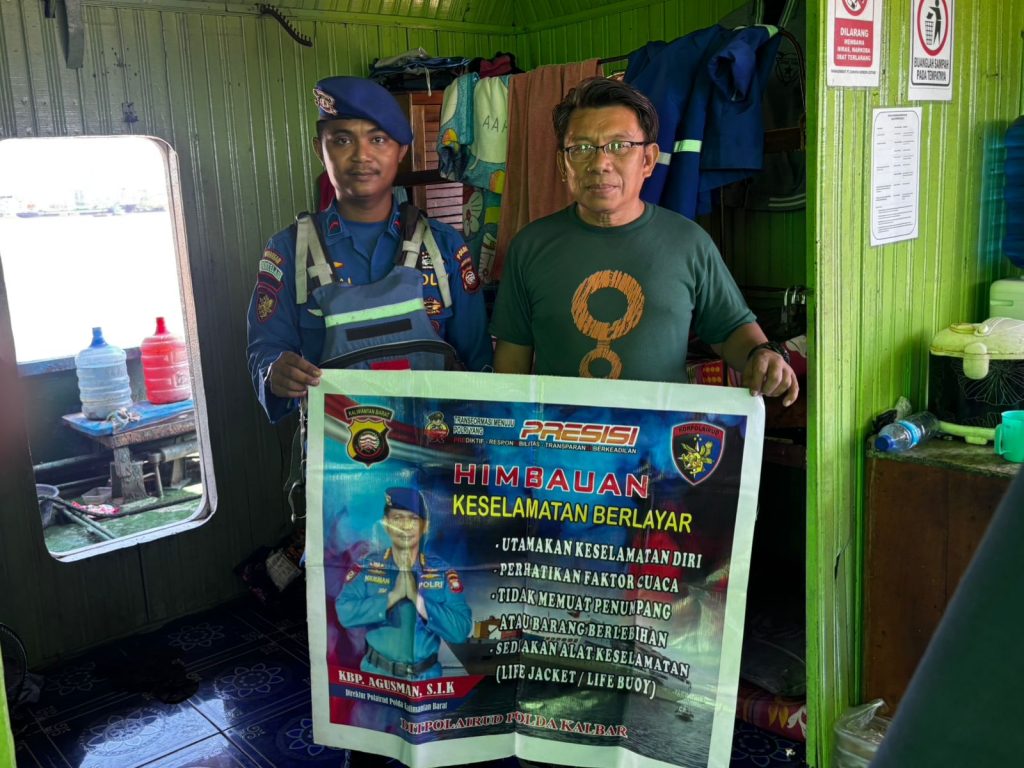 Hari Selasa, 31 Maret 2026 abk KP. VI-10-12 Tanjung Pulau Memberikan menghimbau Keselamatan berlayar kepada abk Kapal yang sedang berlayar di perairan Sungai Kapuas untuk memenuhi alat keselamatan seperti life jacket, ringbuoy, dan lain-lain, karena alat keselamatan tersebut penting jika kapal mengalami permasalahan pada saat berlayar. Disamping itu juga agar memperhatikan faktor cuaca sebelum melakukan pelayaran-