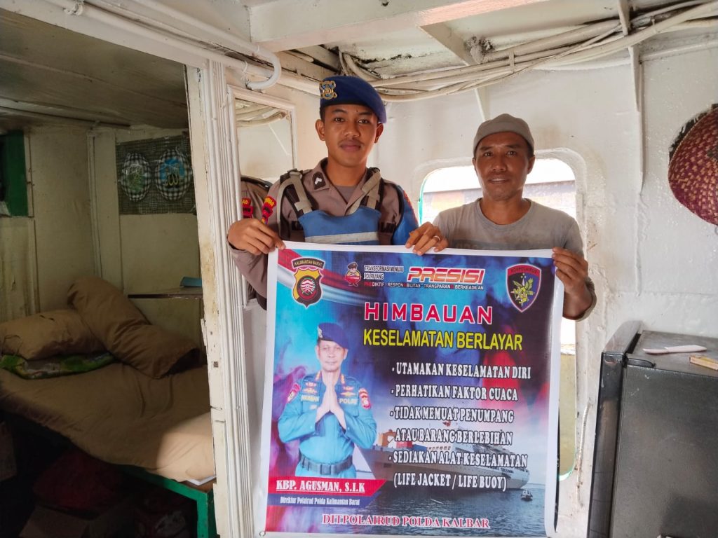Komadan Kapal Patroli VI-10-15 melaksanakan kegiatan himbauan keselamatan berlayar kepada ABK kapal yang akan melakukan pelayaran. Dalam kesempatan tersebut, personil patroli menekankan pentingnya memperhatikan kondisi cuaca sebelum keberangkatan dengan selalu memantau informasi dari BMKG.