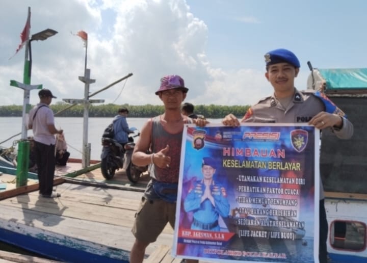 Komadan Kapal Patroli VI-10-15 melaksanakan kegiatan himbauan keselamatan berlayar kepada Motoris Kapal Tambang dan Penumpang yang akan melakukan pelayaran. Dalam kesempatan tersebut, personil patroli menekankan pentingnya memperhatikan kondisi cuaca sebelum keberangkatan dengan selalu memantau informasi dari BMKG.