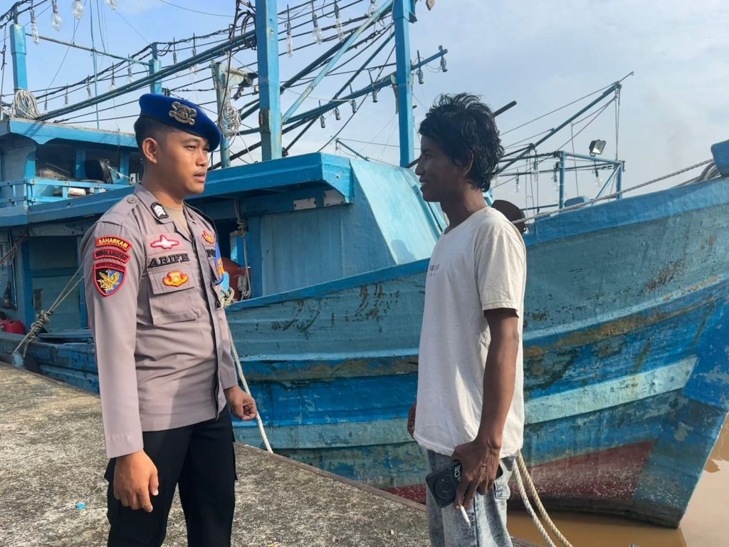 Anggota KP VI-10-18 TPI Sungai Rengas sampaikan pesan Kamtibmas kepada ABK Kapal agar selalu mematuhi peraturan di pelabuhan TPI Sungai Rengas dengan tidak membuat onar dan meminum alkohol.