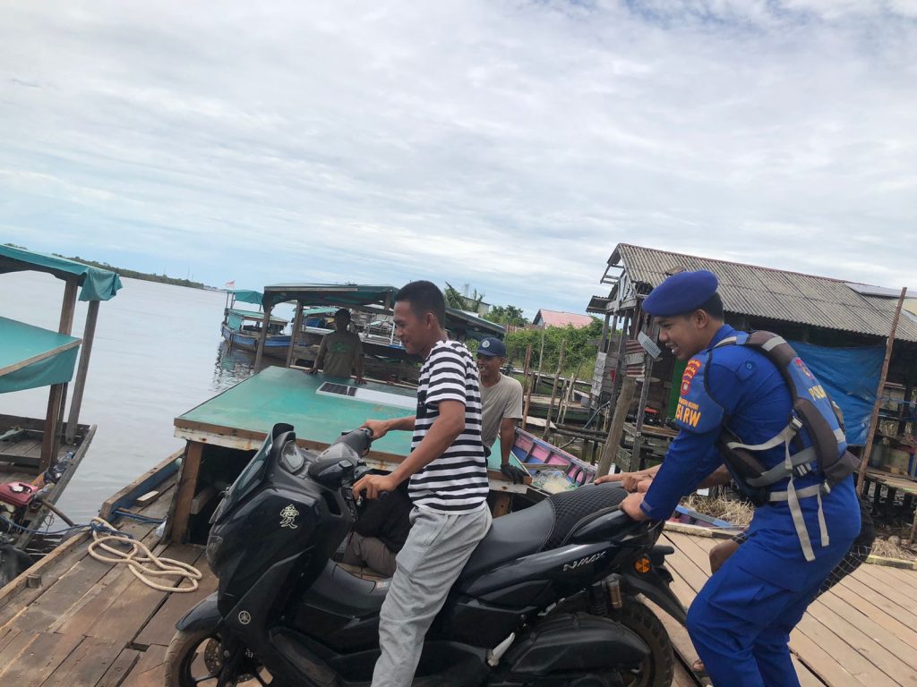 NATAI KUINI – Direktorat Kepolisian Perairan dan Udara (Ditpolairud) Polda Kalimantan Barat kembali menunjukkan aksi responsif dalam mendukung mobilitas masyarakat pesisir. Pada Rabu pagi (8/4/2026), personel Kapal Patroli (KP) VI-10-15 Natai Kuini, Bripda Khairul, melaksanakan giat Polisi Penolong dengan membantu warga menaikkan kendaraan ke atas motor air di tengah kondisi debit air yang surut di Desa Natai Kuini.