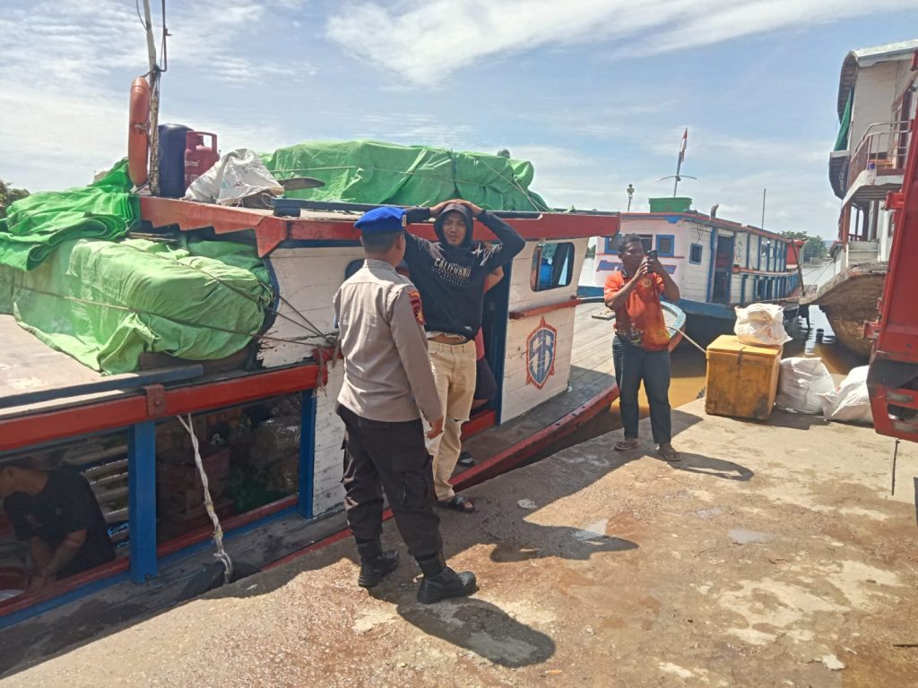 Anggota KP VI-10-05 RASAU JAYA sampaikan himbauan kepada Juraga motor tambang di Pelabuhan Pasar Baru,yang akan melaksanakan Pelayaran.