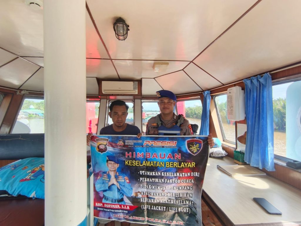 Anggota KP VI-2002 Muara Kubu sampaikan himbauan Keselamatan berlayar kepada Nahkoda dan ABK kapal agar berhati-hati saat berlayar dan selalu memperhatikan cuaca melalui BMKG serta melengkapi alat keselamatan berlayar di atas kapal seperti lifejaket ringbouy dllSerta menghimbau agar melaporkan kepada petugas terdekat jika menemukan atau mengalami tindak pidana perairan dan tidak boleh main hakim sendiri saat mengalami hal tersebut.