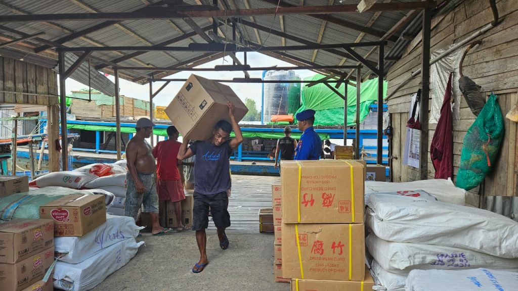 ABK KP. VI-1010 teluk melano melaksanakan Pamwas tkbm yang sedang bekerja bongkar muat barang dipelabuhan pasar rakyat teluk melano untuk mendekatkan polisi dan masyarakat hingga tercipta dan terasa kehadiran polisi di tengah tengah masyarakat, sehingga menjadi polisi yang Presisi dan berguna bagi Masyarakat serta merasa aman.