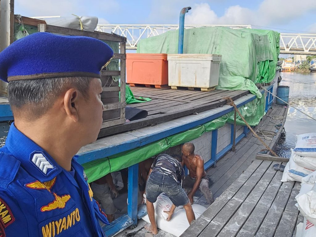 Untuk menciptakan rasa aman kepada nelayan yang sedang bongkar muat barang anggota hadir untuk pengawasan.