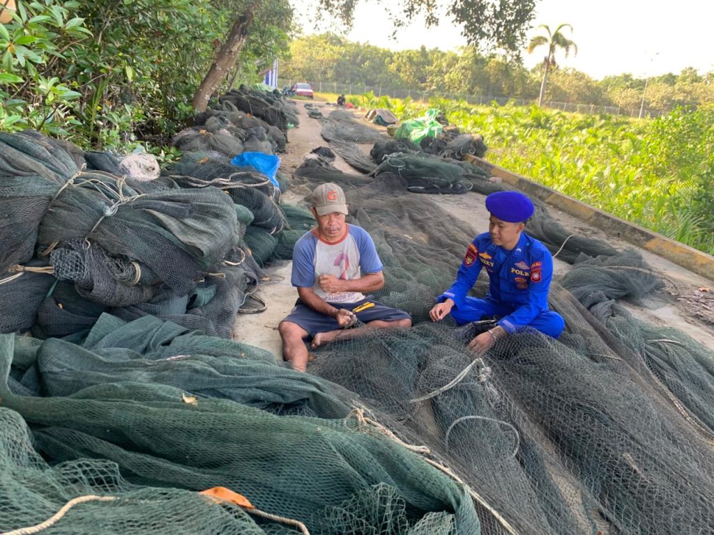 Sekitar pukul 10.00 WIB, saat melaksanakan kegiatan sambang pesisir, personel KP. VI-10-11 mendapati sejumlah nelayan tradisional yang tengah berupaya memperbaiki jaring ikan yang mengalami kerusakan cukup parah. Menyadari jaring merupakan alat vital bagi penghidupan nelayan, petugas kepolisian segera turun tangan membantu proses perbaikan jaring tersebut agar dapat segera kembali digunakan untuk melaut.