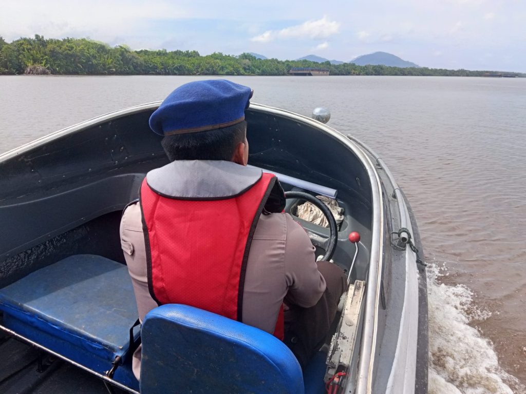 Anggota KP. VI.1010 melaksanakan patroli diperairan sungai rantau panjang dalam antisipasi kerawanan kamtibmas menggunakan sarana speed 40 pk