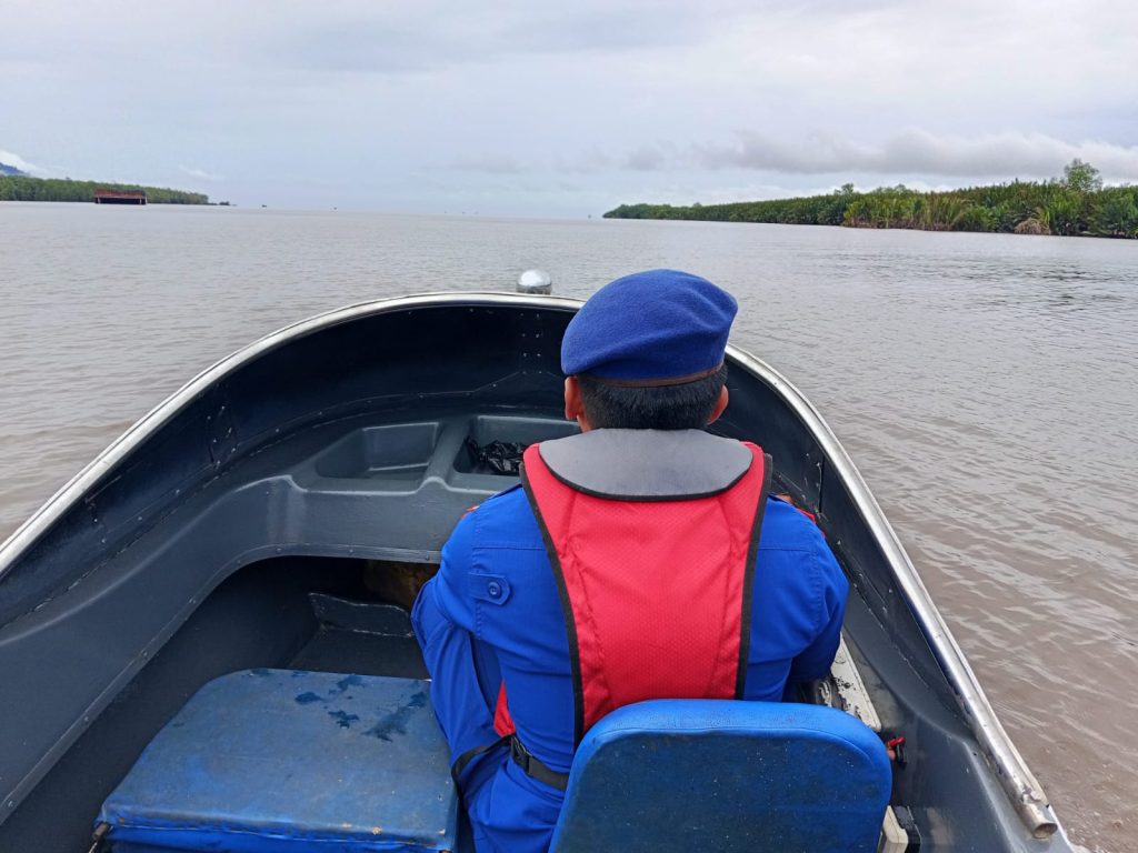 Anggota KP. VI.1010 melaksanakan patroli diperairan sungai rantau panjang dalam antisipasi kerawanan kamtibmas menggunakan sarana speed 40 pk