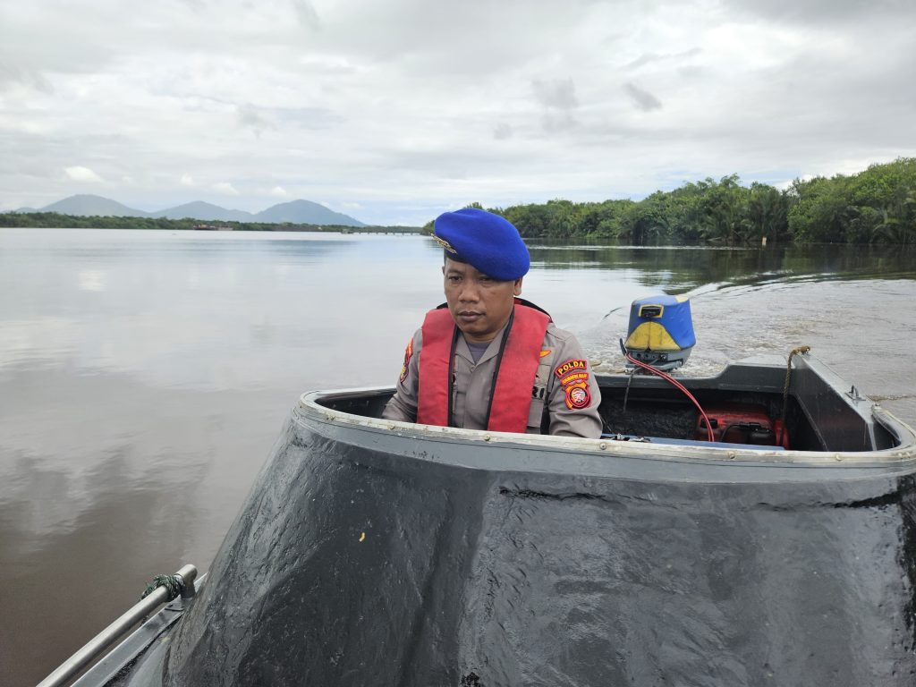 Anggota KP. VI.1010 melaksanakan patroli diperairan sungai tanjung planduk dalam antisipasi kerawanan kamtibmas menggunakan sarana speed 40 pk