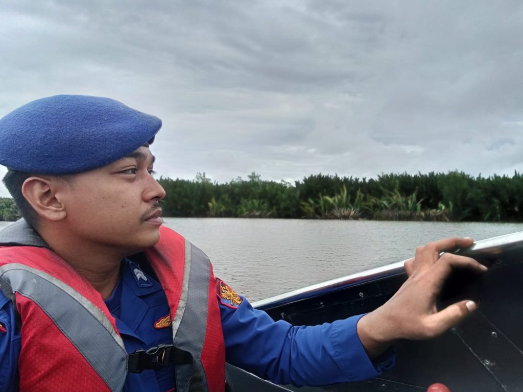 Anggota KP. VI.1010 melaksanakan patroli diperairan sungai mata mata dalam antisipasi kerawanan kamtibmas menggunakan sarana speed 40 pk