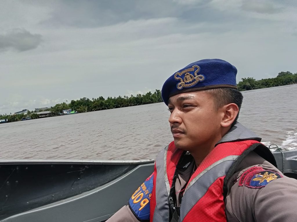 Anggota KP. VI.1010 melaksanakan patroli diperairan sungai tanjung planduk dalam antisipasi kerawanan kamtibmas menggunakan sarana speed 40 pk