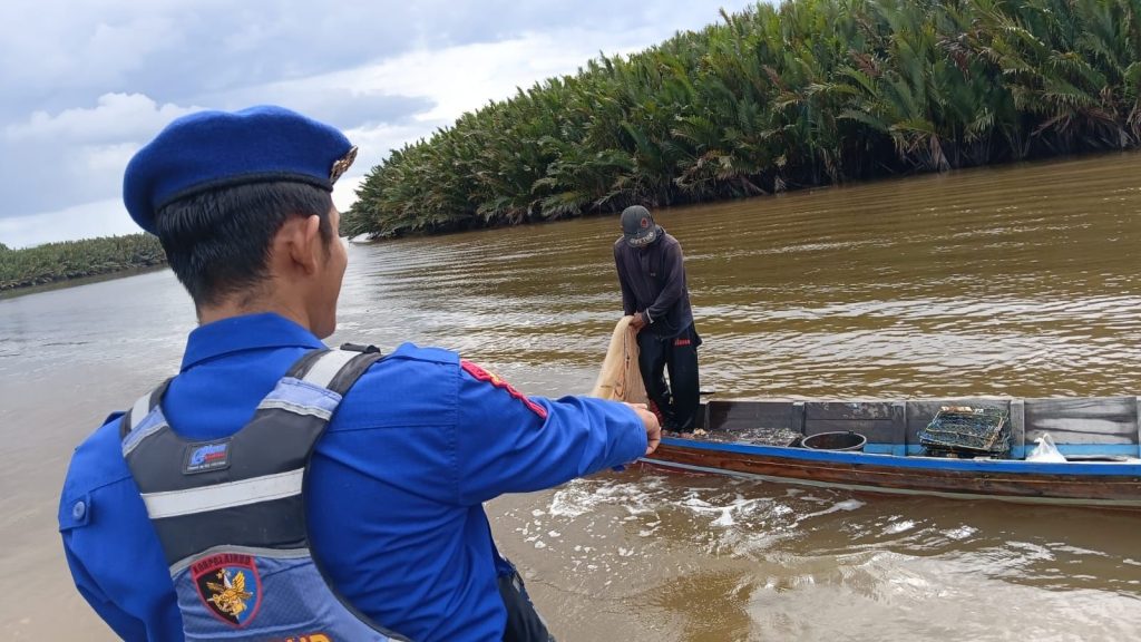 PERSONEL KP. BIDARA VI-2002 MUARA KUBU MENGHIMBAU KEPADA NELAYAN DAN PEMANCING TERKAIT ALAT TANGKAP YANG DILARANG