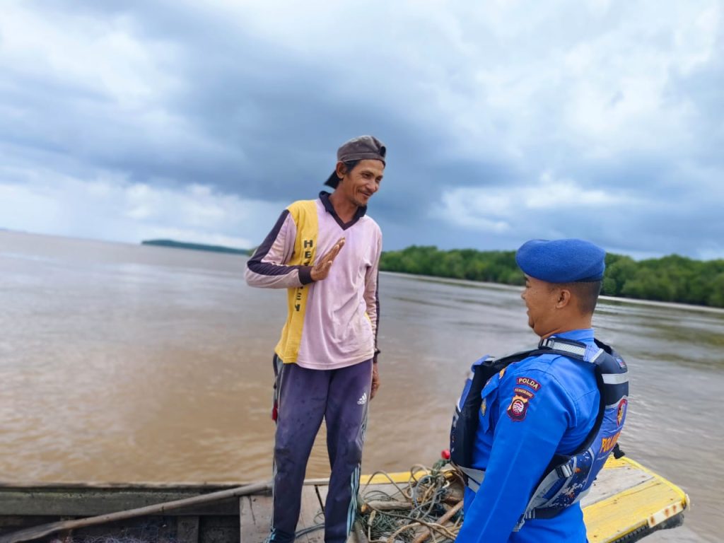PERSONEL KP. BIDARA VI-2002 MUARA KUBU MENGHIMBAU KEPADA NELAYAN DAN PEMANCING TERKAIT ALAT TANGKAP YANG DILARANG
