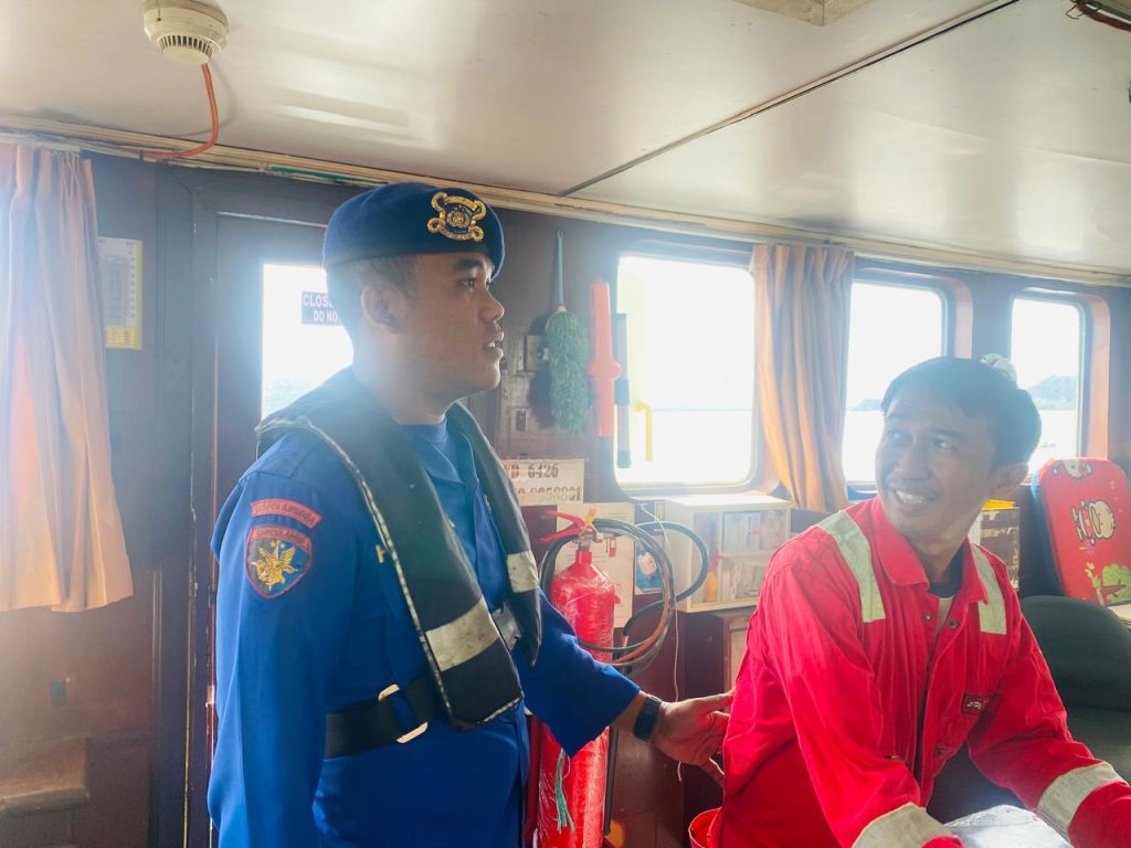 Anggota KP VI-10-08 Batu Ampar menyampaikan himbauan kepada ABK kapal untuk meningkatkan kesadaran tentang keselamatan, keamanan, dan kelestarian lingkungan laut. Himbauan yang diberikan meliputi: