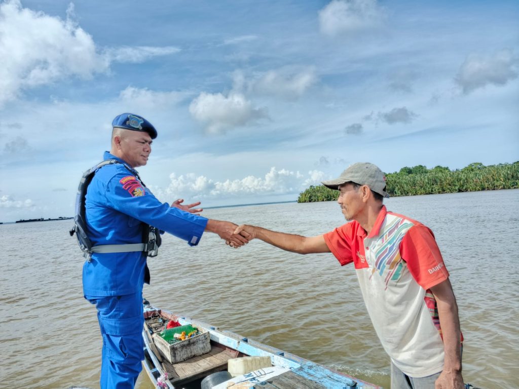 Personel KP.BIDARA VI-2002 muara kubu, mengingatkan kepada nelayan yang sedang beraktifitas mencari ikan agar selalu waspada terhadap cuaca buruk