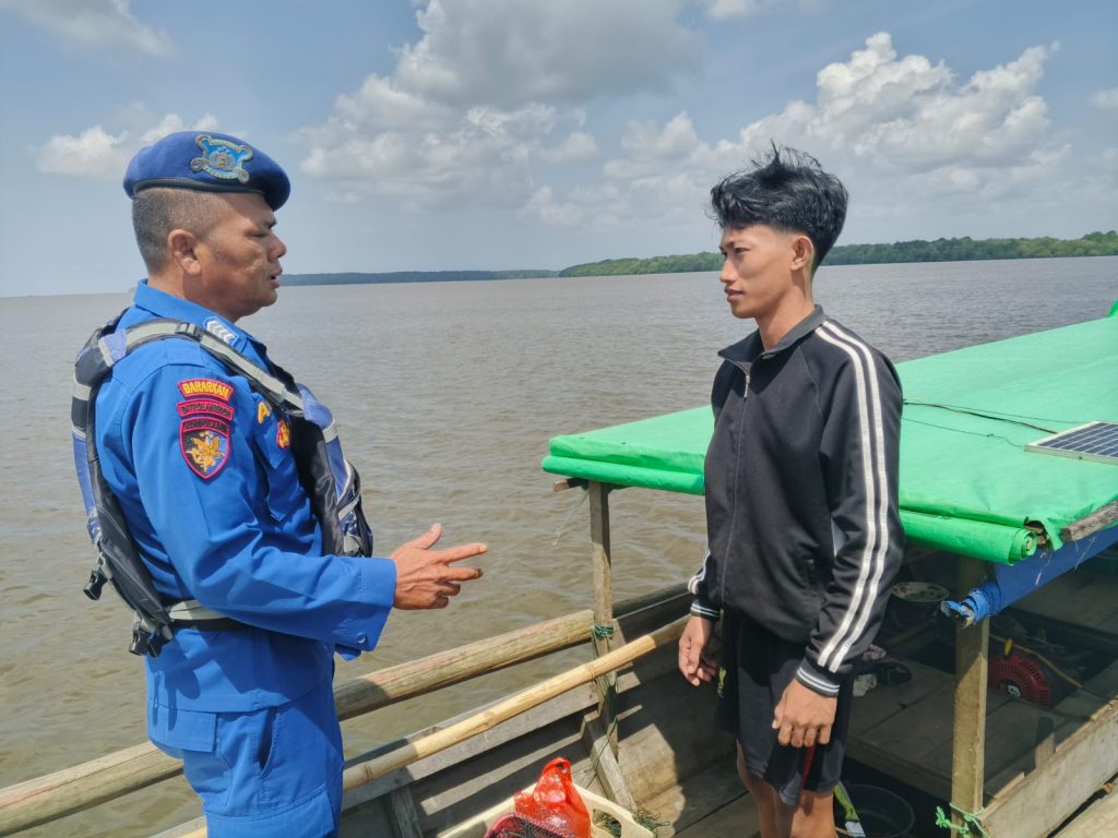 ‎Personel KP.BIDARA VI-2002 muara kubu, mengingatkan kepada nelayan yang sedang beraktifitas mencari ikan agar selalu waspada terhadap cuaca buruk