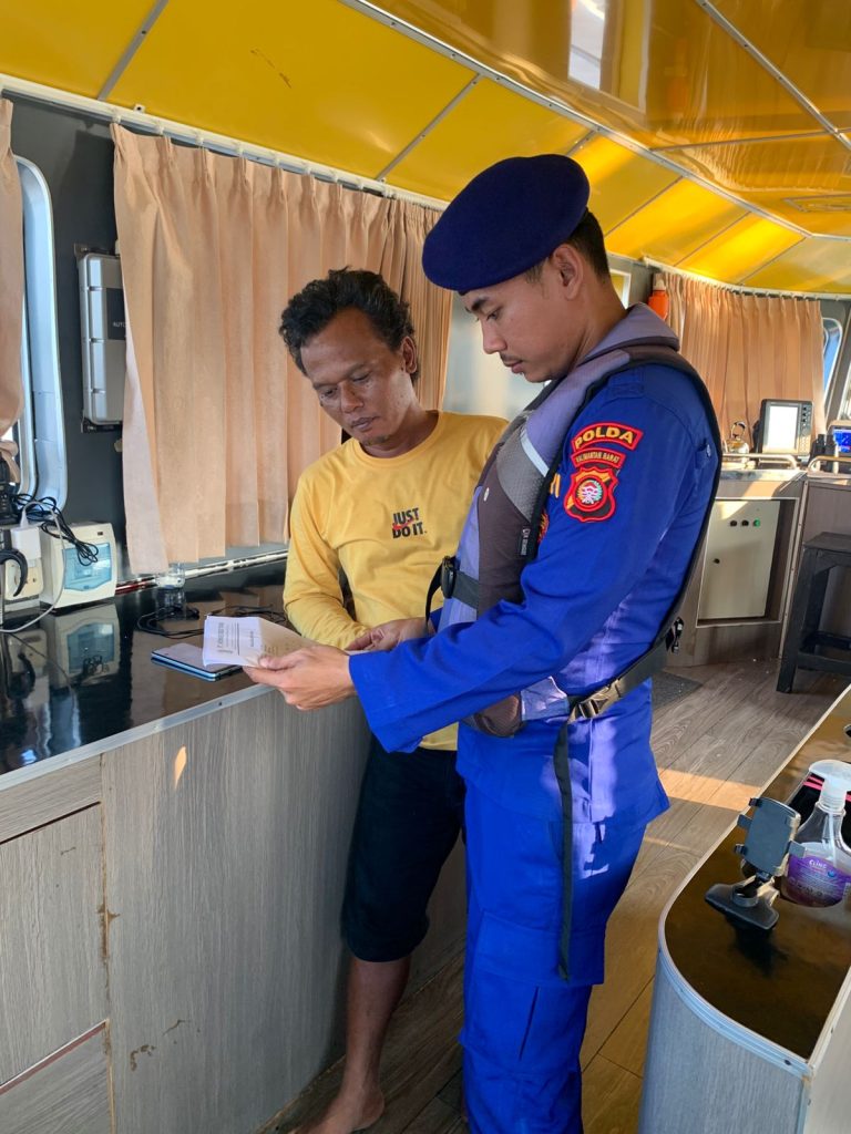 Dalam rangka menertibkan surat dokumen kapal yang akan berlayar keluar pulau personil KP Sempadi VI 1005 Sukalanting melakukan pemeriksaan secara rutin di perairan Sungai Kapuas, selain penertiban surat surat kapal personil sekaligus ajang silaturahmi antara kepolisian perairan dengan nakhoda kapal beserta anak buah kapal, situasi aman.