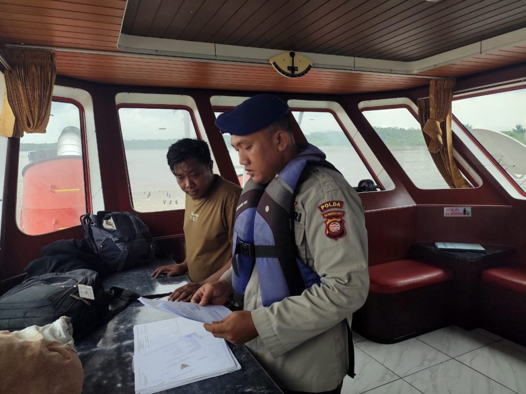 Dalam rangka menertibkan surat dokumen kapal yang akan berlayar keluar pulau personil KP Sempadi VI 1005 Sukalanting melakukan pemeriksaan secara rutin di perairan Sungai Kapuas, selain penertiban surat surat kapal personil sekaligus ajang silaturahmi antara kepolisian perairan dengan nakhoda kapal beserta anak buah kapal, situasi aman.
