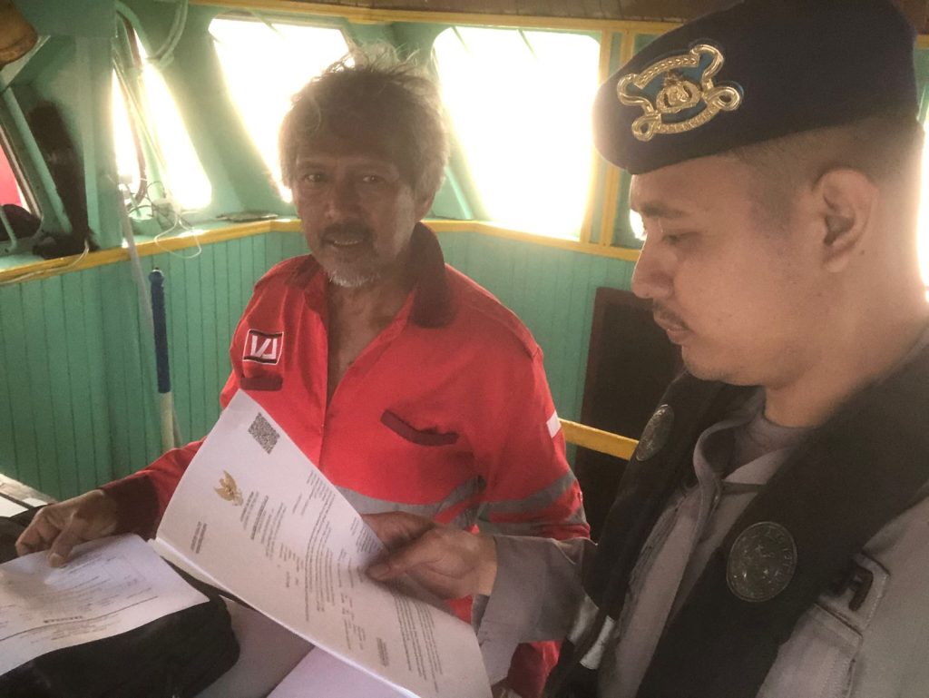 PERSONIL KP.SEMPADI VI- 1005 SUKALANTING MELAKSANAKAN PEMERIKSAAN SURAT-SURAT KAPAL DAN MUATAN KAPAL