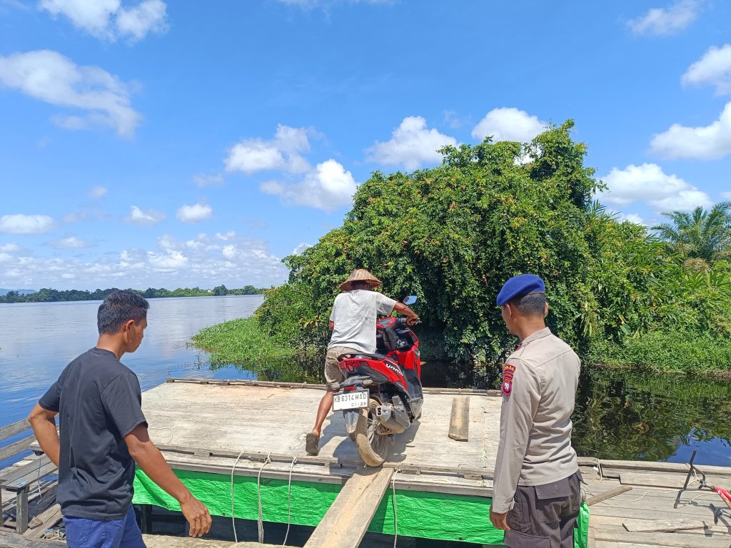 Personil Kp. VI-10-05 Rasau Jaya melaksanakan Pengamanan dan Pengawasan kegiatan penumpang kapal di Penyebrangan Pinang,Rasau jaya