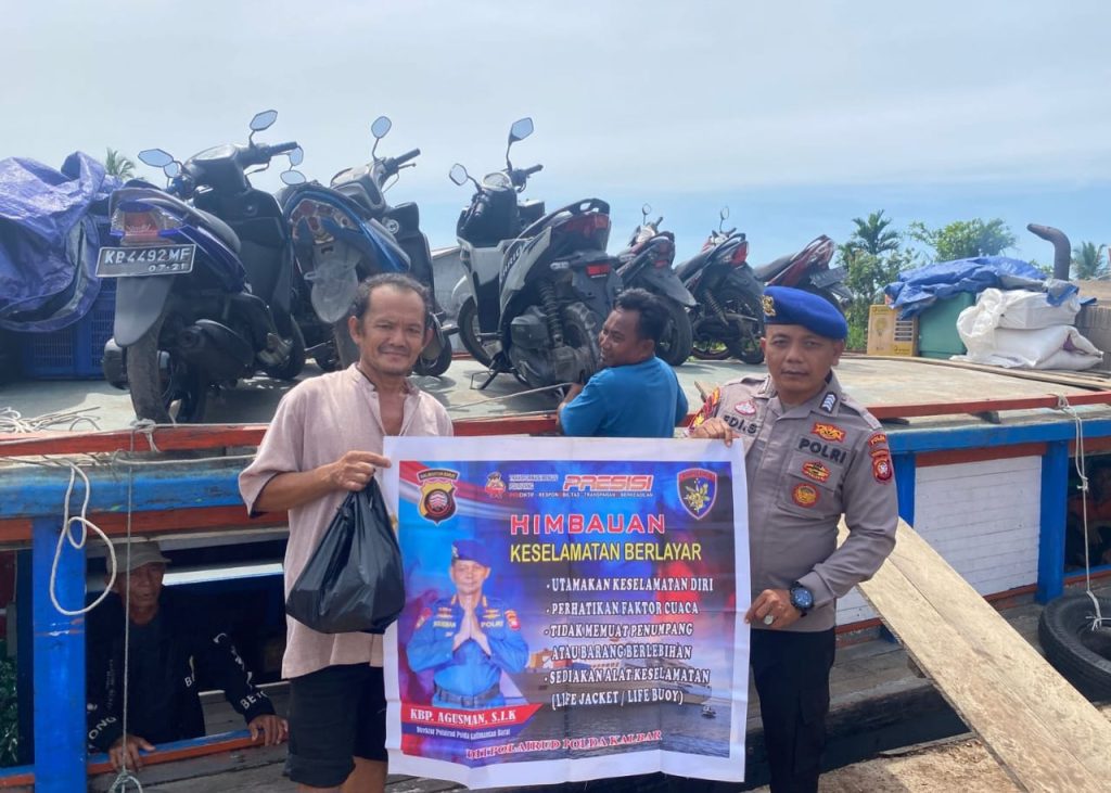 Peraonil KP. VI-10-05 menghimbau kepada abk kapal dan penguna jasa penyebrangan Sdr Sarman di penyebrangan olak-olak pinang kec. Kubu Raya tujuan Sungai bulan Kec. Rasau Jaya, pada saat akan melaksanakan penyebrangan di kesempatan tersebut anggota KP. VI-10-05 menghimbau kepada crew kapal agar berhati-hati dalam melaksanakan kegiatan di atas kapal serta untuk selalu mengutamakan keselamatan dalam melaksanakan pelayaran. Personil KP. VI-10-05 juga mengajak agar memperhatikan alat-alat keselamatan di atas kapal agar di cek secara berkala.
