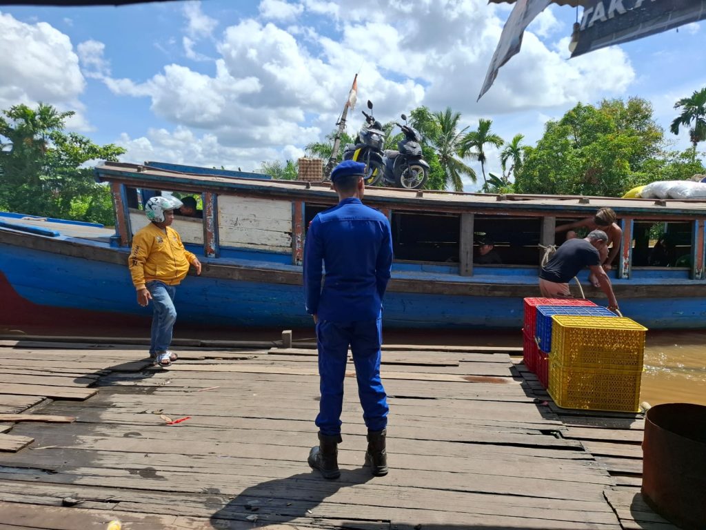 Personil KP VI-10-05 melaksanakan kegiatan pengawasan dan monitoring terhadap keberangkatan serta kedatangan motor tambang pada lintasan Dermaga Pasar Baru–Dermaga Pinang Luar, Rasau Jaya. Kegiatan ini dilakukan sebagai upaya untuk memastikan terselenggaranya angkutan sungai yang aman, tertib, dan lancar serta sesuai dengan ketentuan dan peraturan pelayaran yang berlaku.