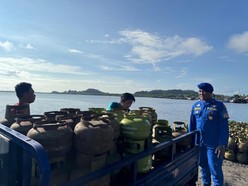 Anggota KP VI-10-08 Wil Batu Ampar melakukan Pamwas Bobgkar muat gas lpj 3 kg di pelabuhan batu ampar