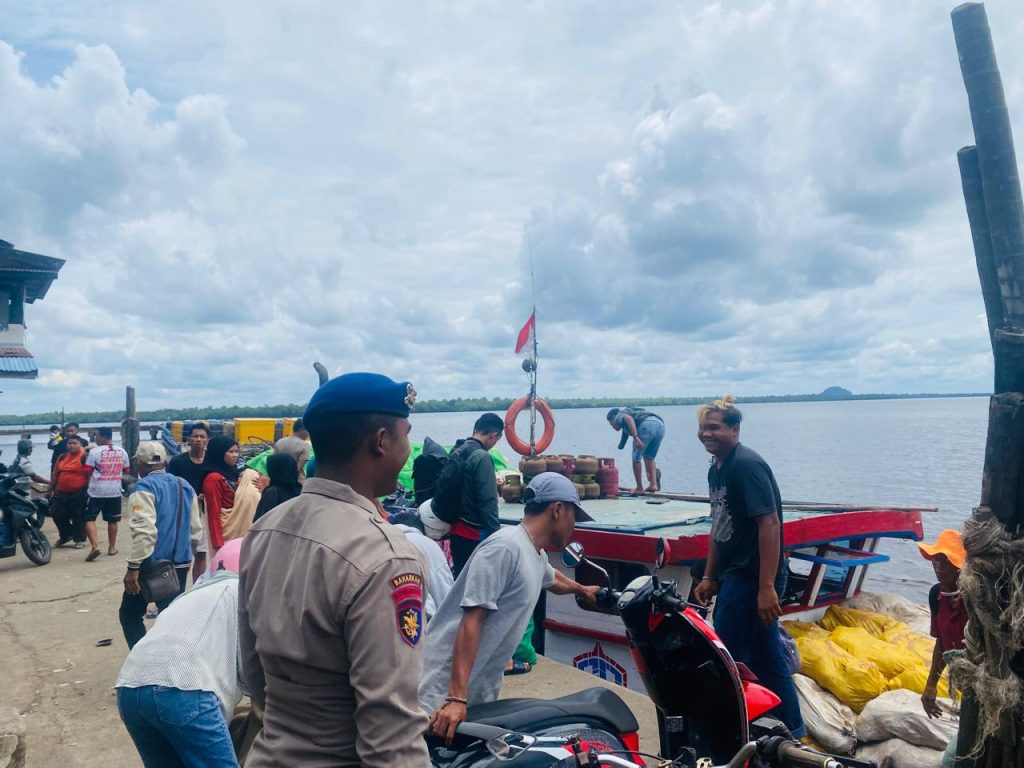 Anggota KP VI-10-08 Wil Batu Ampar melakukan Pamwas naik turun penumpang dan barang di pelabuhan batu ampar