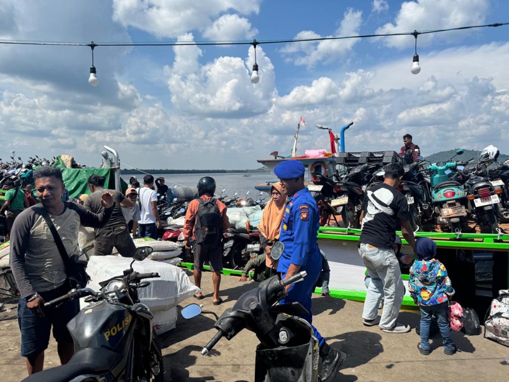 Anggota KP VI-10-08  Wil Batu Ampar melakukan Pamwas naik turun penumpang dan barang di pelabuhan batu ampar