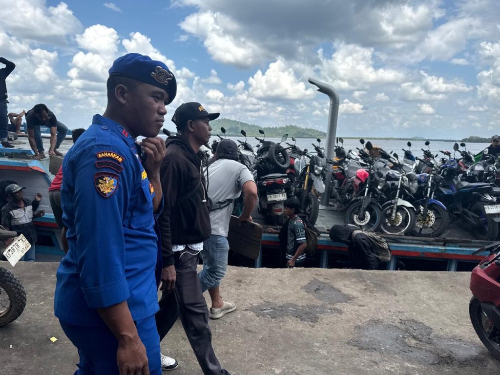 Anggota KP VI-10-08  Wil Batu Ampar melakukan Pamwas naik turun penumpang dan barang di pelabuhan batu ampar