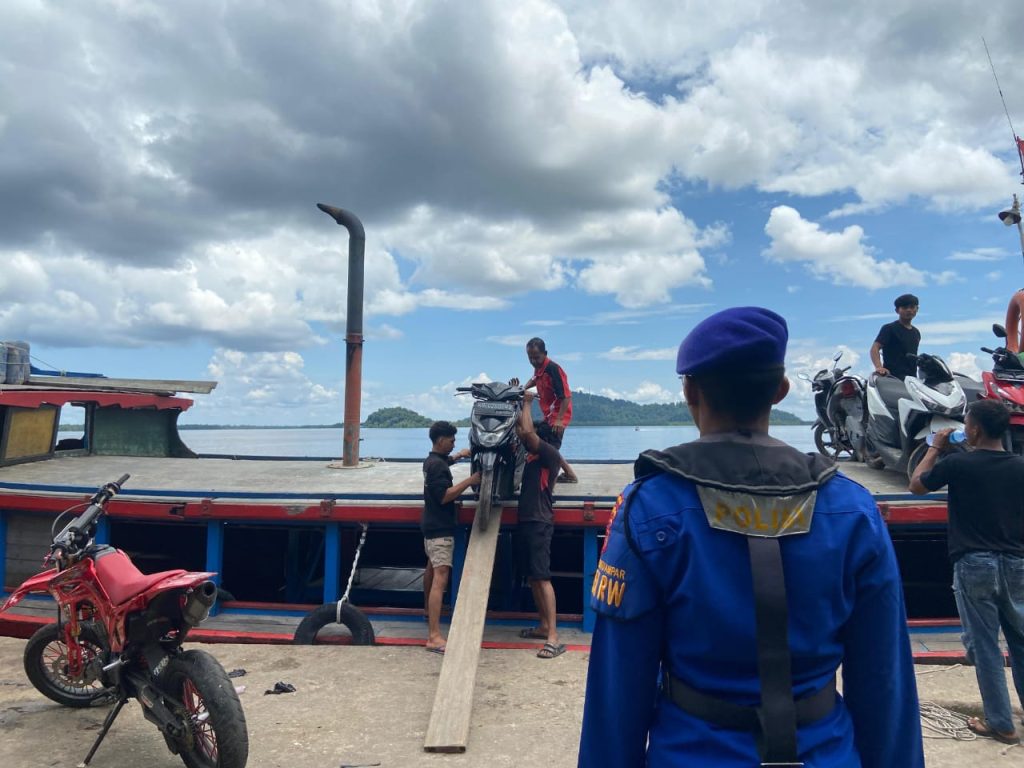 Anggota KP VI-10-08 Wil Batu Ampar melakukan Pamwas naik turun penumpang dan barang di pelabuhan batu ampar