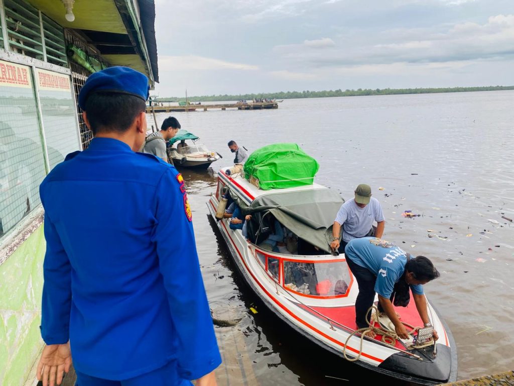 Anggota KP. VI-10-08 Wilayah Batu Ampar melakukan Pamwas naik turun penumpang dan barang di pelabuhan batu ampar