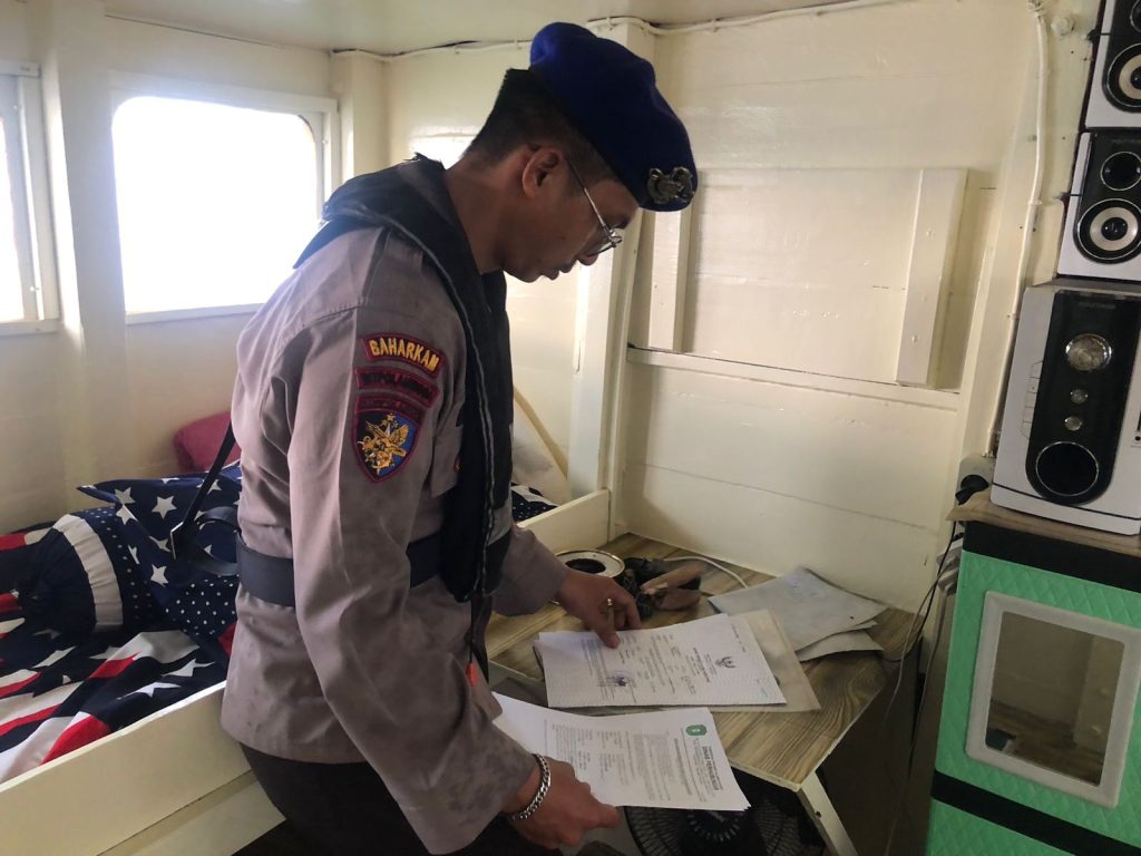 PERSONIL KP.VI. 10-08 BATU AMPAR MELAKSANAKAN PEMERIKSAAN SURAT-SURAT KAPAL DAN MUATAN KAPAL