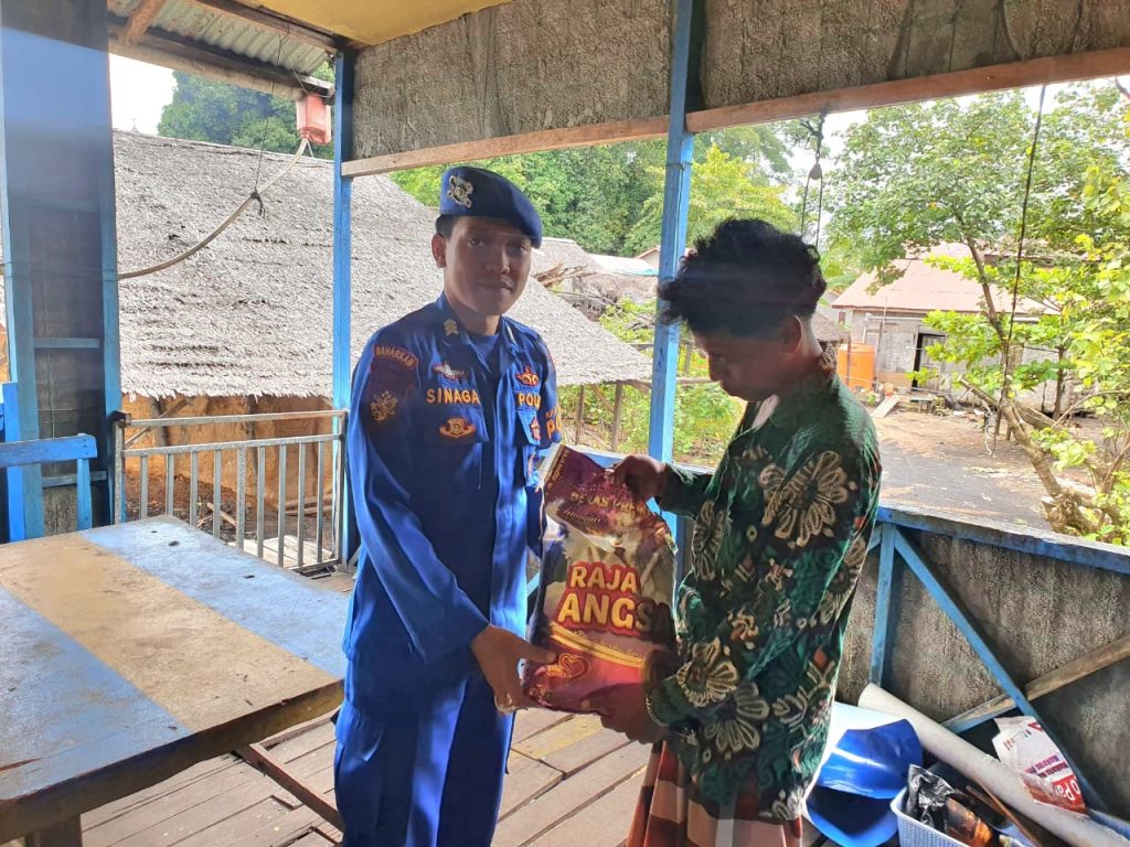 Personil KP. VI-10-08 Batu Ampar memberikan bantuan kepada masyarakat pesisir Batu Ampar a.n. Memet umur 25 tahun yang merupakan Nelayan. Bantuan yang diberikan berupa 1 Karung Beras.